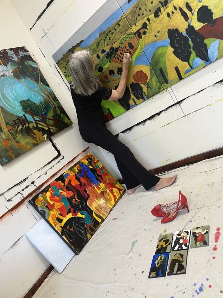 The larger works were created 'en plein air' in the Byron hills and encompass the hinterland and ocean. They are an ode to the joy of living in this beautiful environment.
